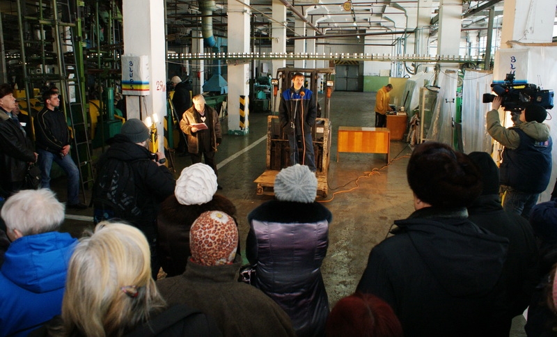 На импровизированную трибуну-погрузчик по очереди поднимались руководители подразделений и рядовые сотрудники. Крановщица Елена Пермякова от имени всех одиноких матерей фабрики заметила, что если работников выгонят на улицу, для всех это будет крахом.