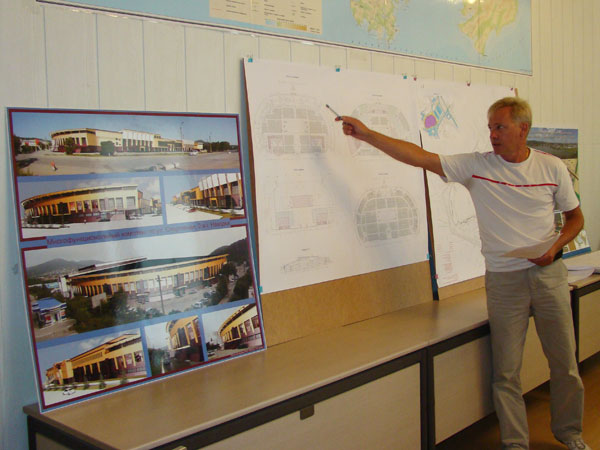 По заказу ООО «Владис» проект центра разработала компания «Лотос-тур». Как рассказал архитектор проекта Андрей ЧЕЧЕРИН, комплекс будет иметь четыре надземных и один подземный этаж и включит несколько десятков различных объектов.