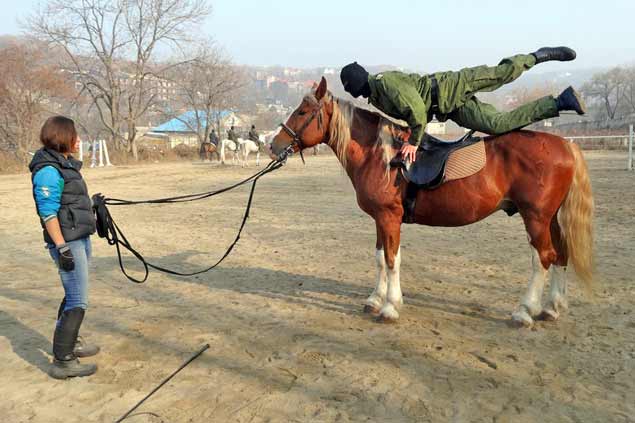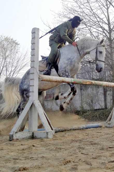 Тренировки начались в середине лета. И все, кроме одного, впервые в своей жизни оседлали лошадей. За три с половиной месяца ежедневных тренировок бойцы научились на лошадях таким трюкам, каким позавидуют опытные циркачи. Теперь каждый может легко встать на ходу на ноги и даже продержаться верхом, держась за седло одной рукой. Но, как признаются сами наездники, тяжелее всего было приучить лошадей не пугаться выстрелов.