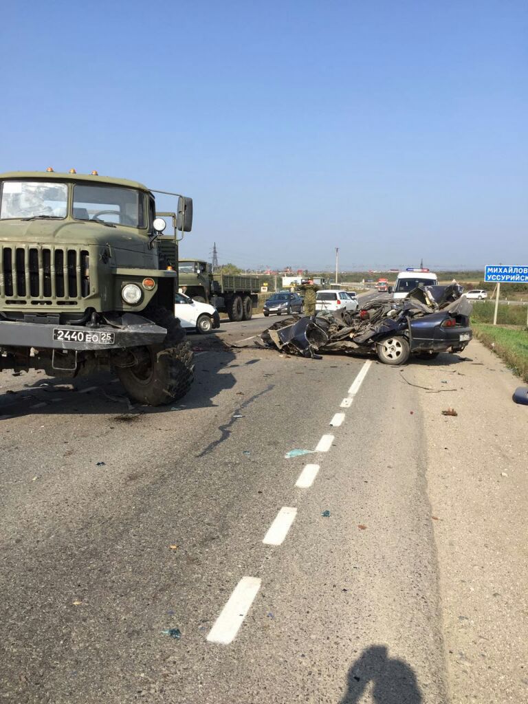 Сегодня, 26 сентября, около села Михайловка произошло страшное ДТП – легковой автомобиль врезался в многотонный Урал. Водитель легковушки погиб на месте.