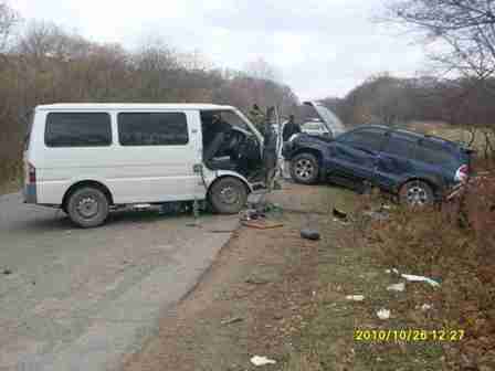 26 октября в 11.00 на участке автодороги "г. Владивосток - г. Артем" произошло дорожно-транспортное происшествие с участием трех транспортных средств: при движении у полуприцепа автомашины "Вольво" открутилась колесная пара, которая выкатилась на полосу встречного движения и врезалась в автомашину "Ниссан Ванет".