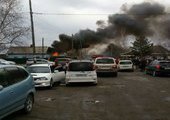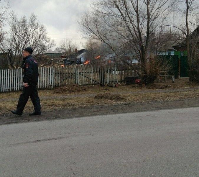 Сотрудники МЧС ликвидируют пожар на месте падения. Полицейские выставили оцепление, местных жителей близко не пускают.