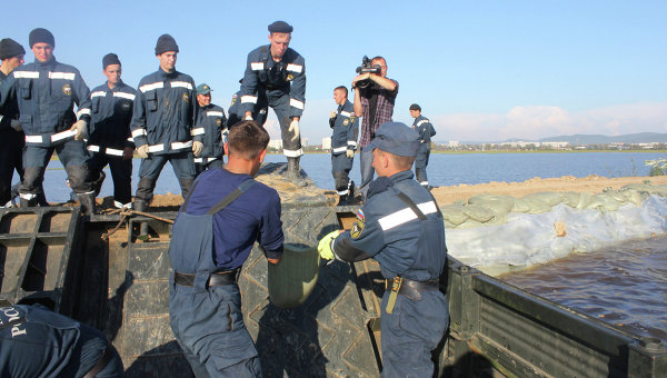 Более 500 военных срочно перебросили для ликвидации угрозы прорыва водозащитной дамбы в районе Комсомольска-на-Амуре, сообщает в четверг Минобороны."Угроза прорыва дамбы и затопления прилегающих населенных пунктов (у озера Мылки) возникла ночью из-за ухудшения паводковой ситуации и подъема уровня воды", — говорится в сообщении.