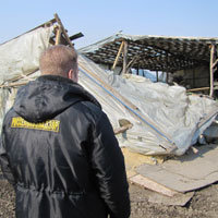 - Минеральные удобрения хранятся в полуразрушенном складском помещении рядом с фуражной кукурузой и луком, - дополняет коллегу А.Б. Крапивницкий. - Тут же свалены в кучу колеса, какие-то тряпки, мешки с опилками, картонные коробки.