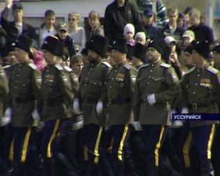 Во Владивостоке благодаря штабу Тихоокеанского флота тоже проводят парады, однако наши - круче. В этом году в нем будет задействовано около 1700 военнослужащих Уссурийского гарнизона (в состав которого, кстати, входят и части трех соседних районов), 54 единицы боевой техники, которая находится на вооружении, и десять единиц покажут как образцы.