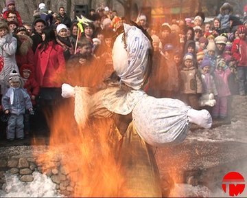 Сжечь соломенное чучело Масленицы в парке не побоялись. Здесь дежурила машина пожарной охраны. В прошлый раз Масленицу, сделанную из воздушных шаров, отпустили в небо. В этом году организаторы традиции не изменили.