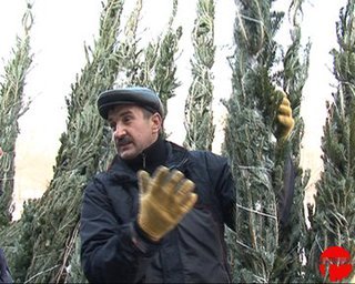 Игорь Кравчук, продавец елей: 'Живую ёлку не рубят, оно не такое пышное, а это все верхушки… Леспромхоз заготавливает лес'.