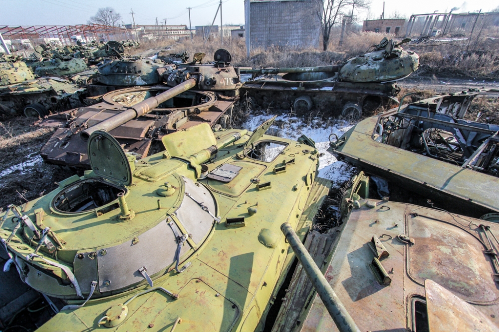 На территории предприятия еще сохранилось огромное количество разобранной и распиленной техники. По всей территории разбросаны ржавые детали и части от танков - башни и гусеницы. Все это напоминает о том, что каких-то лет пять назад завод еще трудился на благо обороны страны.