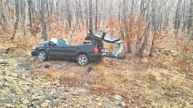 Водитель синего Subaru Forester двигался в сторону поселка Аякс, но с управлениям автомобиля при вхождении в поворот справиться не смог. Выехав на встречку, он врезался в черный Subaru Forester, который от удара выбросило в кювет.