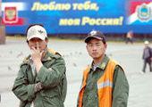 Обычно в середине лета поезда, отправляющиеся из Владивостока на запад, вывозят из края отпускников, решивших отдохнуть где-нибудь на Байкале или посетить родственников в центральной России. Сегодня их соседями по купе чаще всего оказываются иностранные рабочие – узбеки или каракалпаки, разъезжающиеся со строек саммита.Во время отправления поездов Владивосток - Москва или Владивосток - Новосибирск, перрон железнодорожного вокзала напоминает района Ташкента: повсюду слышится среднеазиатская речь, а между вагонами снуют люди с огромными баулами в стиле «мечта оккупанта».
