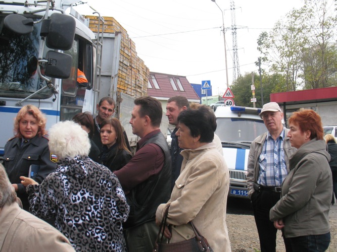 Неожиданно к площадке подъехал грузовой автомобиль Hino, под завязку нагруженный стройматериалами. Водитель посигналил женщине и потребовал его пропустить, однако Тамара Макарова с места не сдвинулась. Тогда водитель вылез из кабины, подошел к женщине и столкнул ее со стула в канаву. По словам Тамары Макаровой, после этого тот же мужчина толкнул и пожилую женщину.