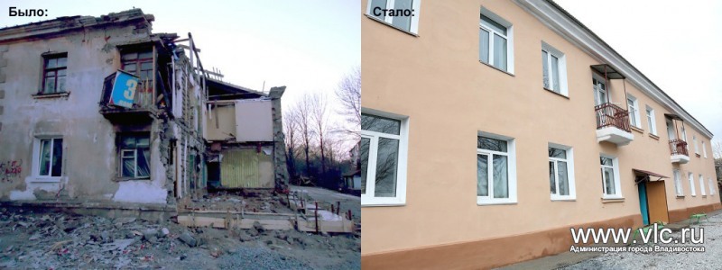 С момента постройки этого 23-квартирного здания власти города ни разу не ремонтировали его, что привело к частичному разрушению стен. Узнав об этом, глава Владивостока Игорь Пушкарев распорядился оперативно включить дом в программу по капитальному ремонту и провести все необходимые работы по укреплению фундамента и стен.