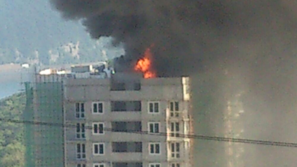 Сегодня во Владивостоке на улице Можайска, что в новом районе города "Патрокл", произошёл пожар в новом, строящемся высотном доме. Возгорание произошло на крыше новостройке - горел пенопласт, сообщает пресс-службе ГУ МЧС России по Приморскому краю.