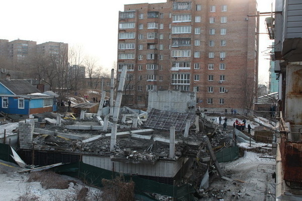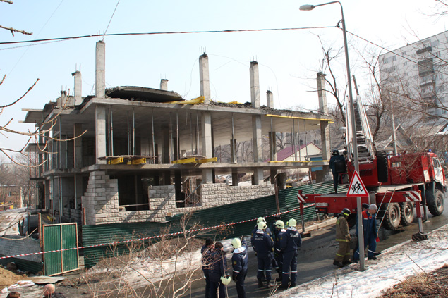7 марта во Владивостоке на улице Иртышской рухнуло перекрытие этажа строящегося здания. На место ЧП тут же приехали пожарные и спасатели. На всякий случай прибыла машина интенсивной терапии. Но жертв среди строителей и местных жителей не оказалосьКак рассказали очевидцы, примерно в 12.00 постройка накренилась, а затем обвалилась.