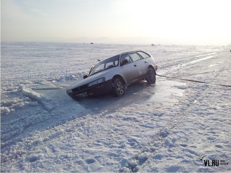 Уже на подъезде к утонувшей машине специалисты обнаружили масшабную трещину и ещё две полыньи, в которые могли провалиться очередные автомобили.