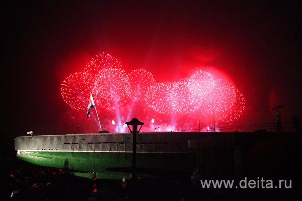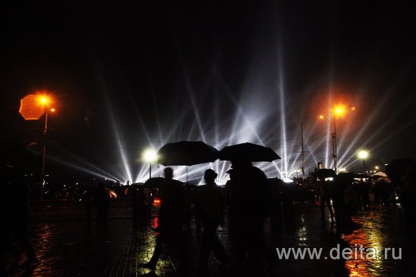 Шоу продолжалось около 20 минут и закончилось грандиозными залпами золотых фейерверков. Зрители, завороженные представлением, еще какое-то время не хотели верить, что все закончилось, однако уже через 10 минут ливень заставил всех в спешке расходиться по домам. Кстати тем, кто приехал в город на машинах, повезло меньше всех – они еще около получаса провели в глухих автомобильных пробках, образовавшихся из-за перекрытых дорог.