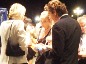 По старой и доброй традиции вечеринка в честь открытия кинофестиваля прошла загородом в Доме переговоров. Гости и участники кинофестиваля после просмотра фильма открытия «Небесный суд» в кинотеатре «Океан» расселись кто по машинам, кто по автобусам и отправились продолжать общение в неформальной обстановке уже на фуршете под музыку и звон бокалов. В этом году в Доме переговоров собралось раза в три больше местных випов, чем в прошлом. Впрочем, для звездных гостей был накрыт отдельный стол под шатром на лужайке в паре метров от остальных столов. Венсан Перес на этот раз был гораздо скромнее, чем в прошлый приезд. Гораздо реже в его руках можно было заметить бокал со спиртным. А веселью он предпочел тихое общение. Отдельно от всех остальных держался и Григорий Антипенко, сыгравший главную мужскую роль в сериале «Не родись красивой». Он стоял в окружении своей съемочной группы.