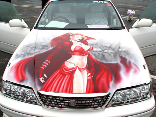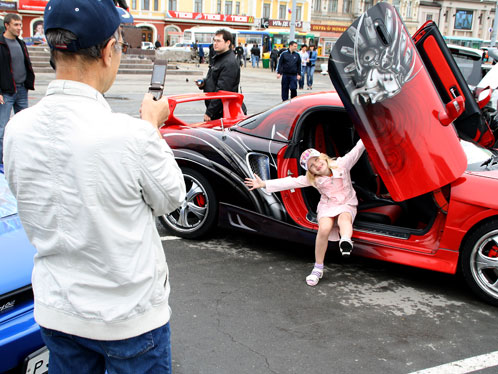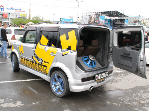 Народ вовсю позировал перед объективами фотокамер и мобильных телефонов возле солидного джипа, на запасном колесе которого красуется трогательный Вини-Пух, рядом с легковушкой, на капоте которой эротично раскинулась нарисованная дива, заменившая отсутствующих по случаю холодного утра традиционных девушек-моделек. Зрители с любопытством глазели на CUBE, прикинувшийся HUMMER и VITZ, закосившим под бэтмэн-car.