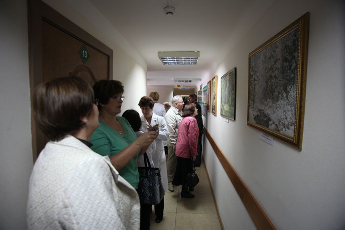 Необычное мероприятие состоялось сегодня в офтальмологической поликлинике в районе Гайдамака. Холл и коридоры лечебного учреждения украсили живописью. На открытии вернисажа присутствовал и автор пейзажей, а также ликов святых Борис Цой.- Многие люди, направляясь в больницу, заранее испытывают дискомфорт, - сказал художник. – Часто в лечебных учреждениях существует неблагоприятная энергетика боли, которую испытывают пациенты. Я надеюсь, что мои работы настроят нездоровых людей на позитив и помогут им выздороветь.