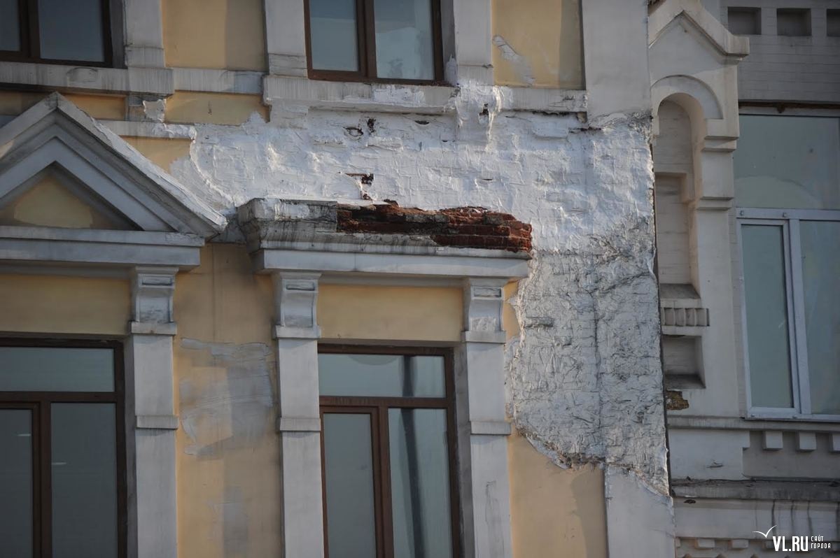 16 марта, утром, в центре Владивостока на тротуар рухнула часть фасада исторического здания, в котором расположен торговый центр "Центральный", по Светланской, 29. Обломки штукатурки засыпали тротуар, никто не пострадал.
