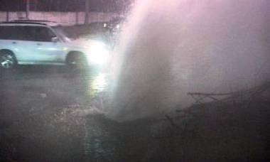 Во время гидравлических испытаний на улице Борисенко прорвало водонапорную трубу. Фонтан горячей воды хлынул на проезжую часть.Напор воды был такой силы, что железная крышка люка взлетела на несколько метров в воздух и врезалась в забор автостоянки. Ограждение не выдержало такого удара и осыпалось вниз. Лишь по счастливой случайности рядом не оказалось прохожих.