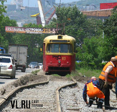 Во Владивостоке продолжается демонтаж трамвайных рельсов. На этот раз в районе улицы Борисенко — от конечной остановки трамвая «Сахалинская» до рынка на Школьной. Демонтаж связан с заменой трубопровода, проводимого «Примводоканалом». Трубы проходят рядом с трамвайными путями и, чтобы их поменять, необходимо разобрать железнодорожное полотно.