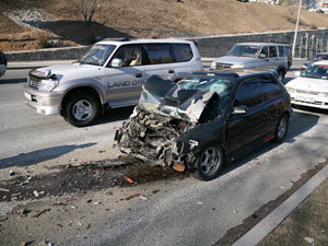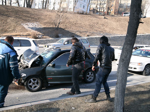 Рулевой малолитражки «Corolla2», по словам очевидцев, мчался на бешеной скорости по крайней левой полосе в сторону Второй Речки. На ней припаркованы были микроавтобус и «Camry». Удар был такой силы, что стоящий микроавтобус догнал седан. Обе машины получили повреждение, сильнее всех досталось, конечно же, водителю-лихачу и его пассажирам. Их автомобиль восстановлению не подлежит. Три мужчина кавказской внешности, находившиеся в салоне, вышли из автомобиля, только когда подъехала карета «скорой помощи». Они были все в крови, а один из них сильно хромал – видимо, сильно повредил ногу. Девушка славянской внешности, которая была с ними, травм по счастливой случайности не получила.