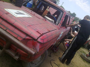 Если в самых первых гонках всех поражал переоборудованный Nissan March в новом кузове, то сегодня публику эпатировал водитель на древнем «Запорожце». По идее у него было преимущество – двигатель-то расположен сзади, а это позволяет спокойно таранить укрепленным передом машины противника. Однако по результатам трех заездов выиграл автомобилист на Toyota Levin. Кроме этих двух машин участвовали в гонках Corona-«зубатка», Corolla, Mark 2.