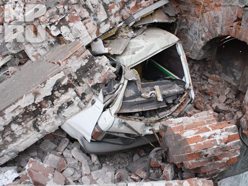 Стенка похоронила еще и микрогрузовичок, но, как говорят местные жители, он стоял здесь на приколе, списанный.