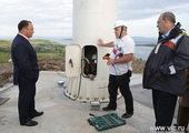 Глава города осмотрел всю систему и поднялся на сопку, где установлен сам ветрогенератор. Конструкция весит несколько тонн. Игорь Пушкареву рассказали об условиях работы новой установки и об ощутимой экономии от такого источника электроэнергии.