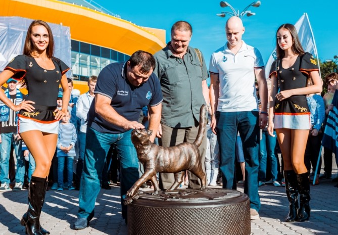 Вчера, 27 августа, во Владивостоке перед КСК "Фетисов Арена" торжественно открыли памятник знаменитой кошке Матроске, объевшей рыбный магазин на 60 тысяч рублей и впоследствии ставшей талисманом хоккейного клуба "Адмирал".
