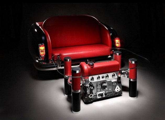 Мебель может быть разной. Кому то нравятся спальни Италии, кому-то предпочтительнее стиль хай-тек, а вот умельцы из Чехии делают мебель из... автомобилей. Оказывается, автомобильные детали могут гармонично смотреться не только в гараже, но и в квартире, ничуть не портя дизайн. Наоборот, журнальный столик из двигателя или диванчик из задних сидений автомобиля сделают интерьер необычным и запоминающимся.